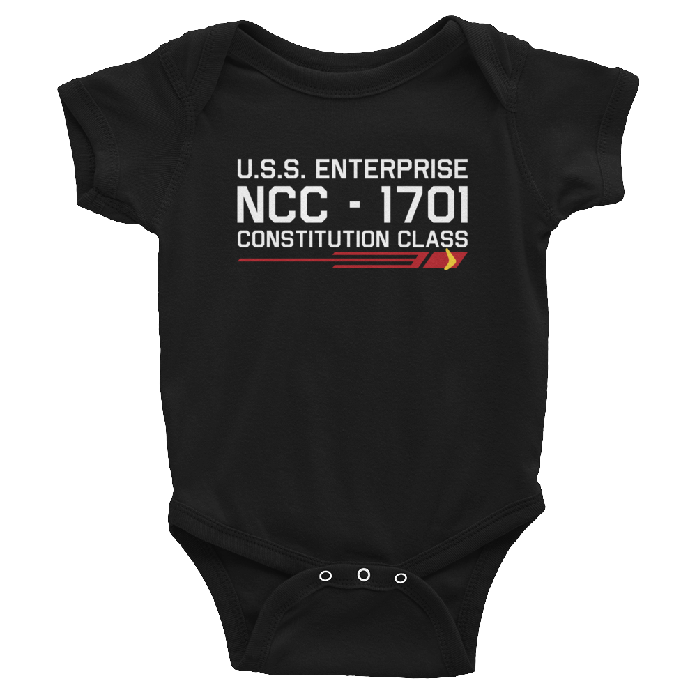 These are the voyages... The original USS Enterprise NCC-1701 Constitution Class starship baby bodysuit inspired by Star Trek (1966).